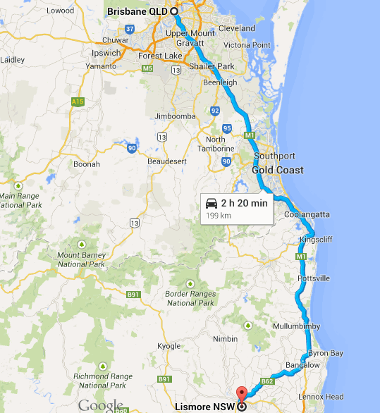 We decided that our first stop would be Lismore as it was 2h30 south of Brisbane. We would have preferred to stay near the ocean, but at the time we were afraid that all campgrounds would be full. In reality, we realised in the next days that they do get full but only AFTER Christmas, not before!