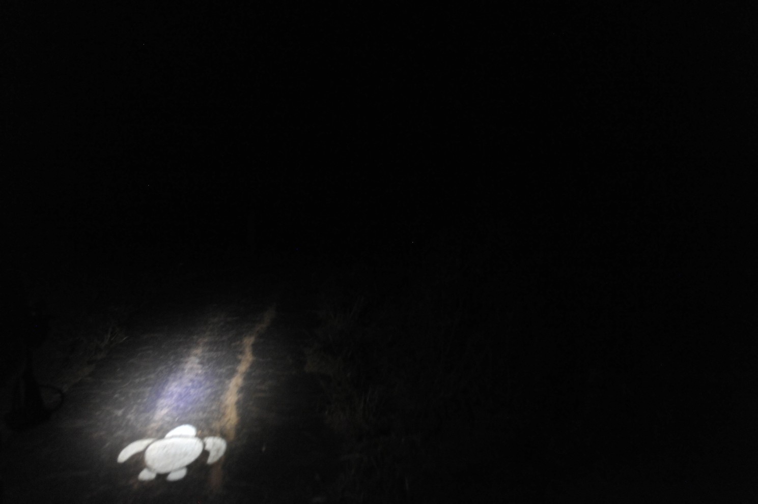 We walked to the beach, following the turtle sign on the floor, guided by a ranger.