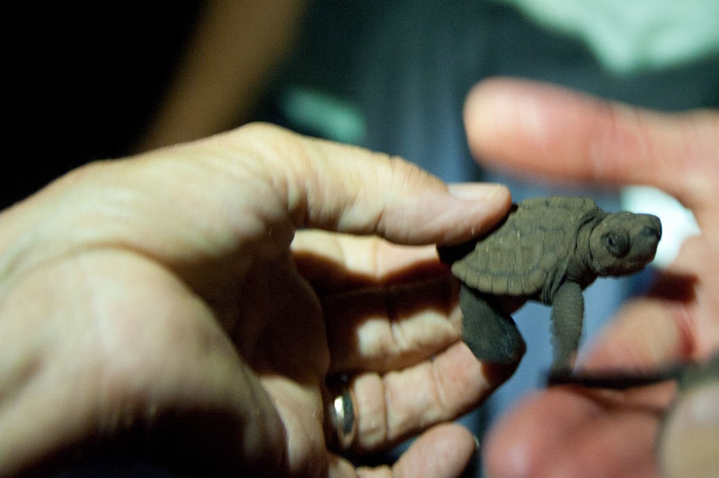 At the beach, we all gathered near a nest where the rangers were expecting some turtles to hatch. I expected to see turtles in some eggs breaking their egg shell but actually they do that during 5 days way below the sand and once out they get one after the other to the sand surface so when we watched them, we saw baby turtles exiting the sand. We were not allowed to take photos even without flash, probably because some people would still use the flash, and the other reason is apparently because the infrared used by some cameras may hurt the turtles. The centre is allowed to take a sample and pass it around, these can be flashed and touched on the shell and legs like this one: