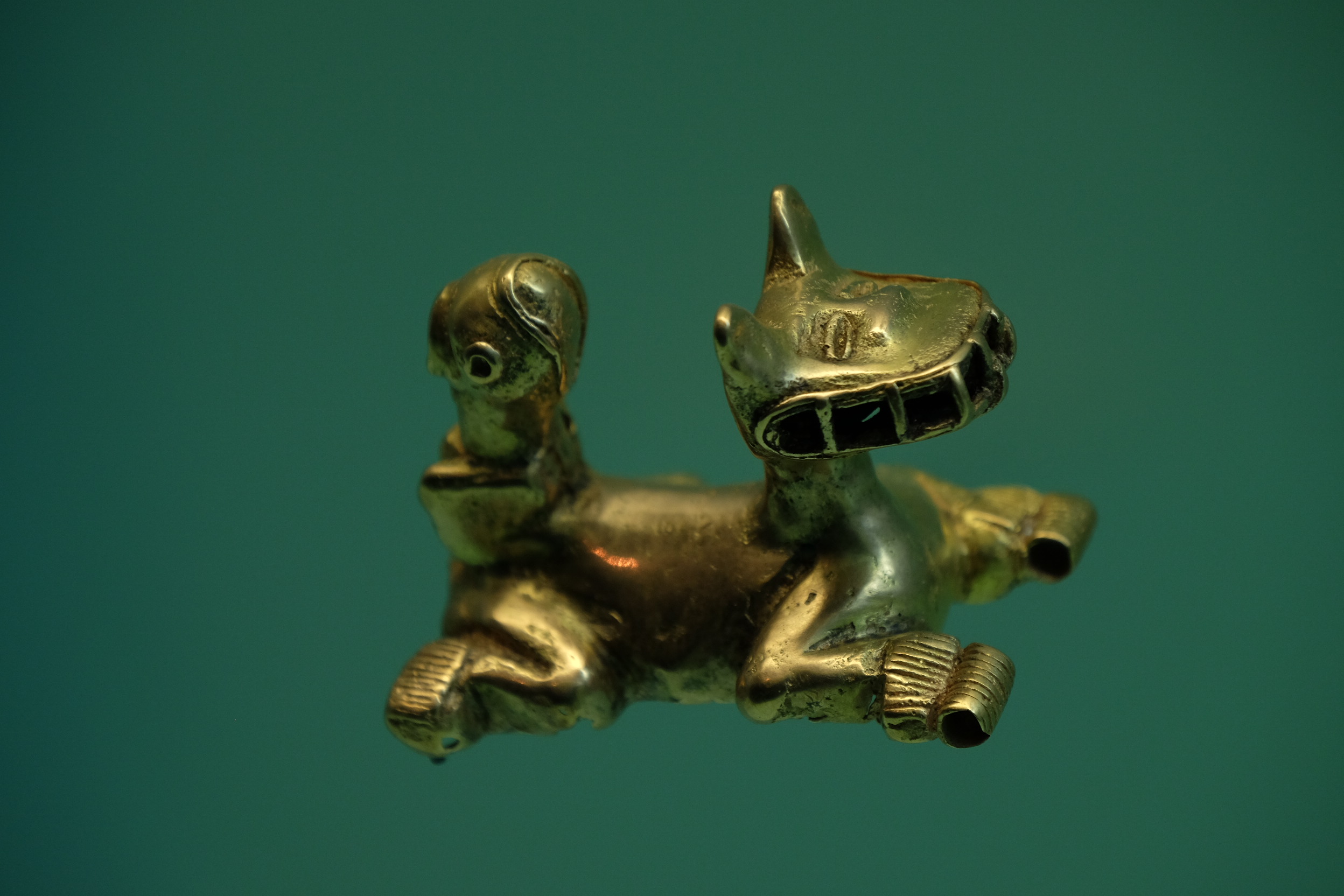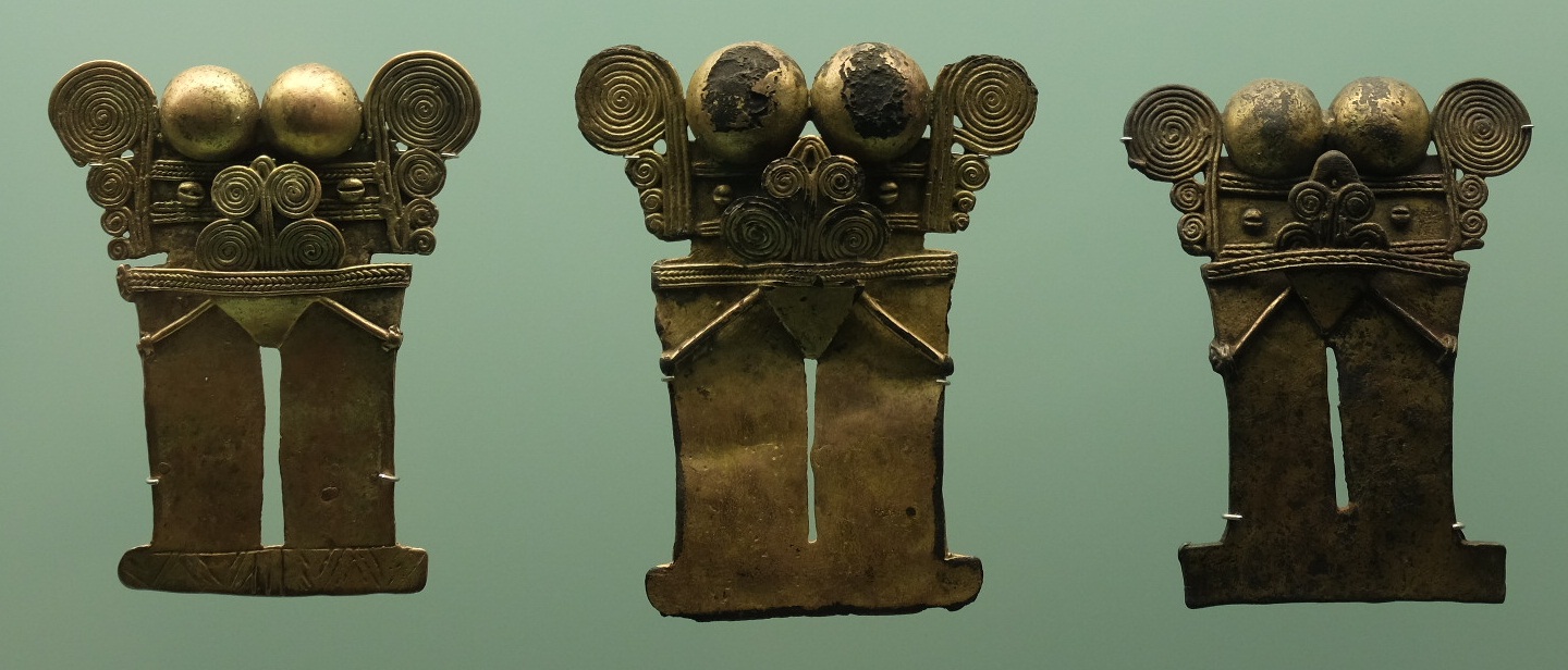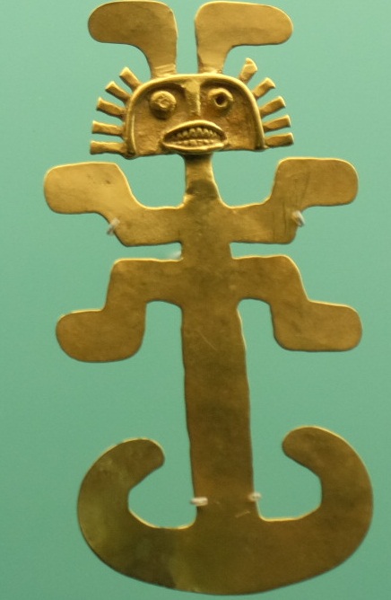 Most gold objects created between 200BC and 1000 were linked to the ceremonial life and it is interesting to see the type of animals created, for example this one is a bird-mammal figure from the Uraba region.