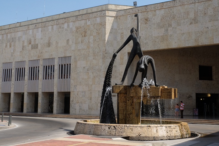 He was part of a bigger setting in front of the Teatro Heredia.