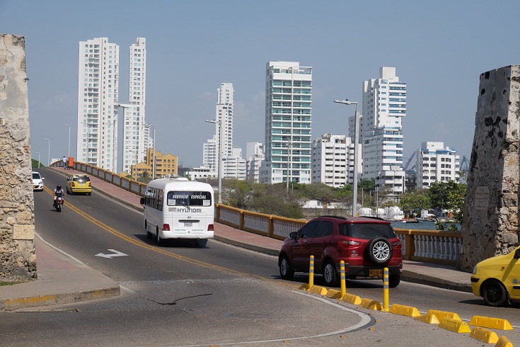 A bridge going to another part of Cartagena, big skyscrappers