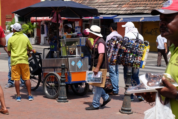 Here is the plaza, buzzing, although interestingly we do not see on it all the various comedians / performers who usually stand there doing soap bubbles, acting like if they were sitting on nothing, being Darth Vader or Yoda. Cartagena has not been reached by that yet. Just people hanging around, kids running after pigeons.