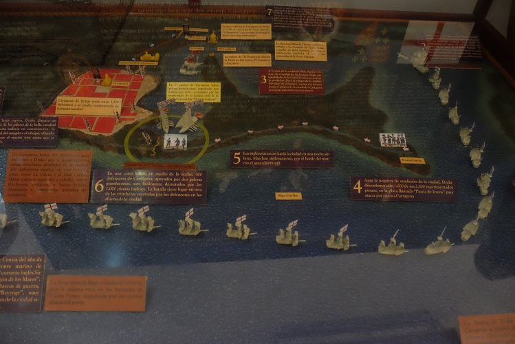 What I was looking for was to understand how the pirate Francis Drake had conquered Cartagena with his vessels. Well, here is the story short. He arrived with about 3,000 men on a lot of big boats. About 1,500 men went in small canoes to the city. There the city was divided between immediately surrendering or fighting. One guy decided they should fight. So they tried but they were outnumbered. Then Francis Drake said ok we can stop, but you give me X amount of money. They pretended they could not, that it was too much. So he was not happy and destroyed the cathedral which was in construction. Then they said ok, we give you the money, here it is, or at least they gave more than what they pretended they were able to. So he said fine, and left and then went to the Queen Elizabeth I and told her the city was fine now, and she gave him some money too. Right, if you don´t like my version, there is always wikipedia. 🙂