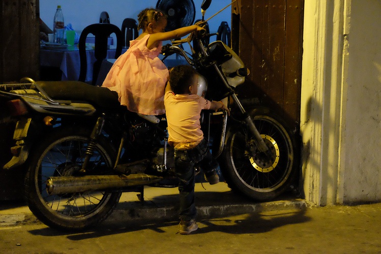 On the way back I saw this little girl and brother playing with the motorbike of their dady, that was cute.