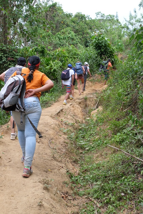 And we walked and walked. Now, please do yourself a favour if you decide to do this trek. Come with proper hiking boots. Your feet will thank you! Trail shoes are ok too, but it is very steep and a long hike, with the rain it can get muddy. Having proper hiking boots mean you get strong support for your ankles and a lower risk of falling and injuring yourself. You need less effort to walk too. Less blisters probably too. Definitely avoid the sandals if you can otherwise you will struggle and sometimes walk bare feet like this woman here.