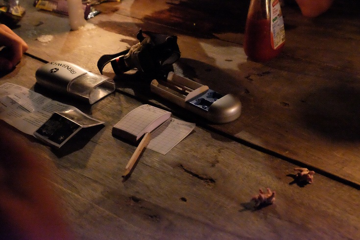 And I discovered the game “Schweinerei” that Martina had brought, where you throw 2 pigs like you would throw dices and based on how the fall on the table, on their feet, on their back, you win certain points. You can keep going throwing them and winning points but you take the risk of them landing in a way that makes you loose all points so you need to decide when to stop. It was a funny game even if I was pretty bad at it.