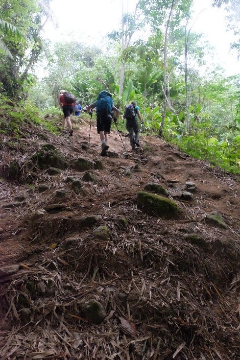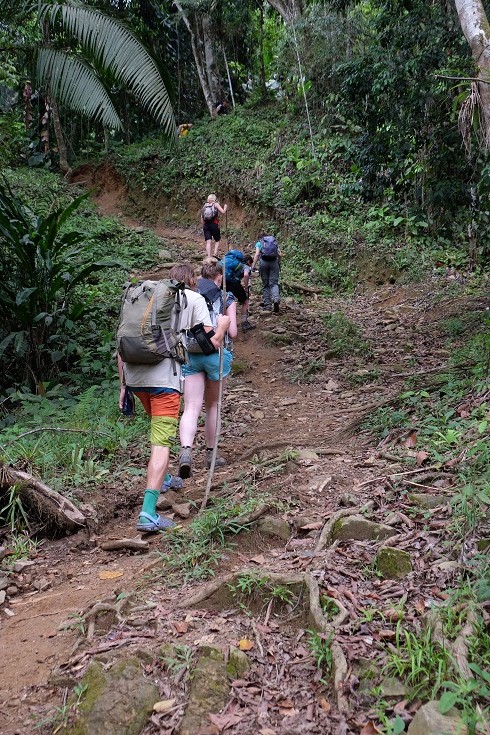 6.55am and already some awesome landscape. And the fresh new t-shirt starting to stick to the body, already! And drops falling slowly from the face. Jungle weather.