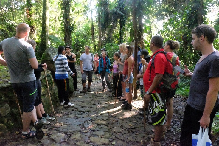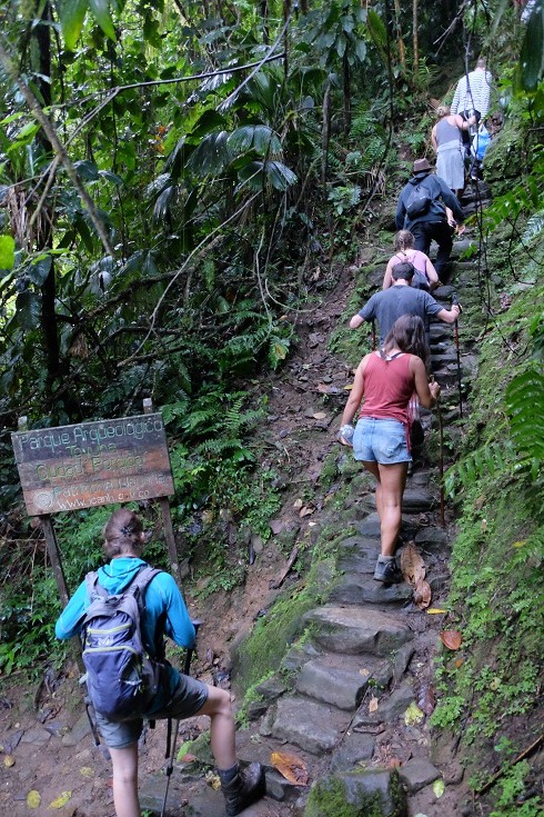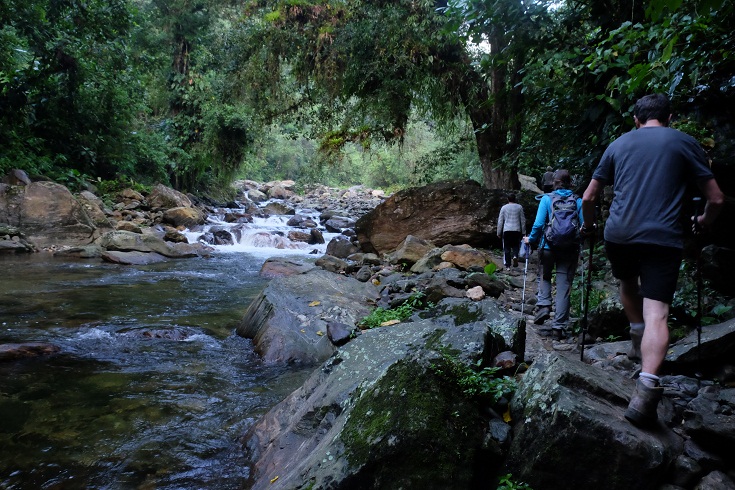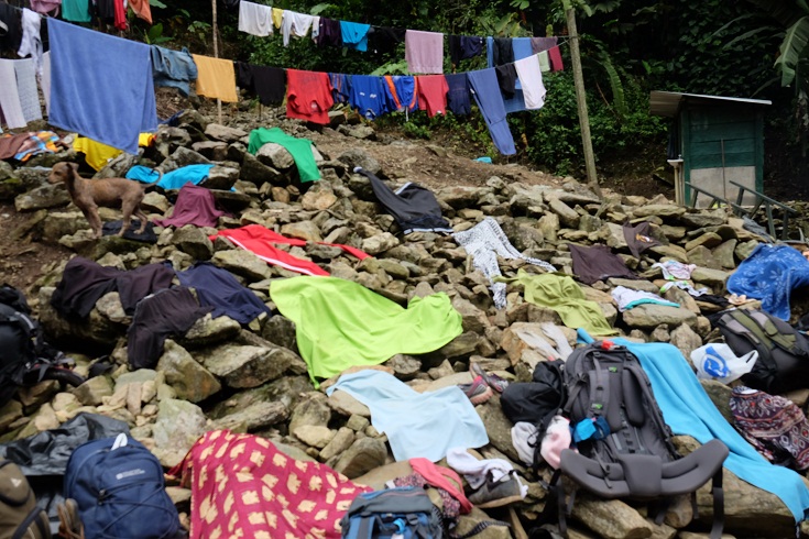 We woke up around 5am, got out of our chrysalides, had brekky and were ready to go. I had a big dilemma that morning. My short had been stinking so much that the night before I had washed it in the river. No matter how much I had drained the water from it, it did not dry at all during the night. That´s the thing there, things do not dry! I only had another pant-short which was supposedly for the evenings only, to have something dry to wear in the evening. I could not get myself to wear that totally wet short to go hiking, also it was a bit chilly in the morning, we were still all in long sleeves. But if I was taking the short part of the short-pant, I was taking the risk of making it sweaty, stinky, and wet and not have anything at all to wear in the evening! I still took that risk and wore it. Luckily when we turned back the short had dried in the sun. Lucky we had sun that day. Definitely recommend taking 2 or even 3 pair of shorts, plus a pant, plus a merino leggings. Seriously, the walking is steep and hard, you get sticky and muddy, and if you are not lucky it pours rain on you. You better have one thing making you comfortable which is to wear dry clothes in the morning just before you start the new day of hiking. Even if it means carrying another kilo. Leave the book at home, you will socialise with everyone, and put that extra kilo of clothes in the bag!