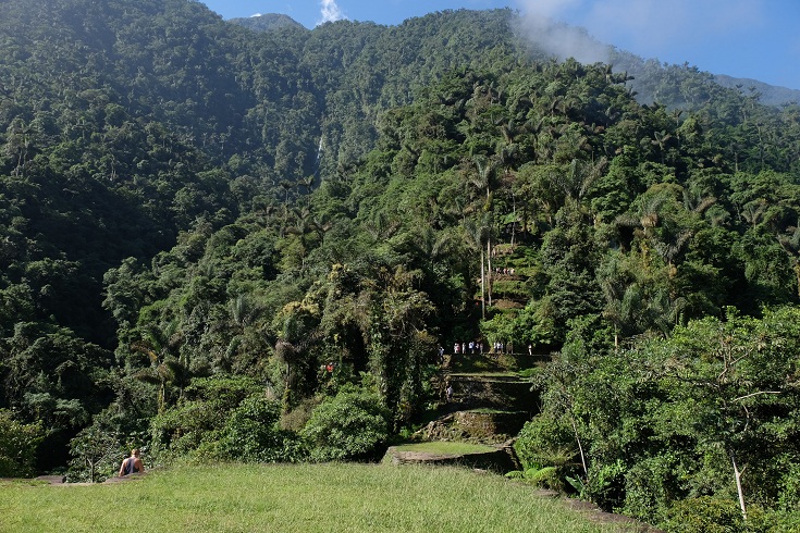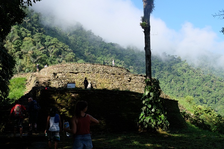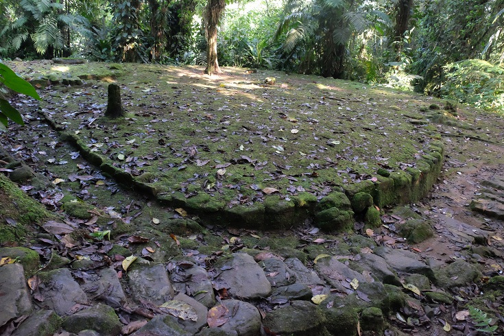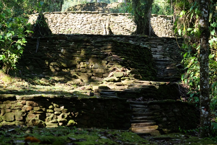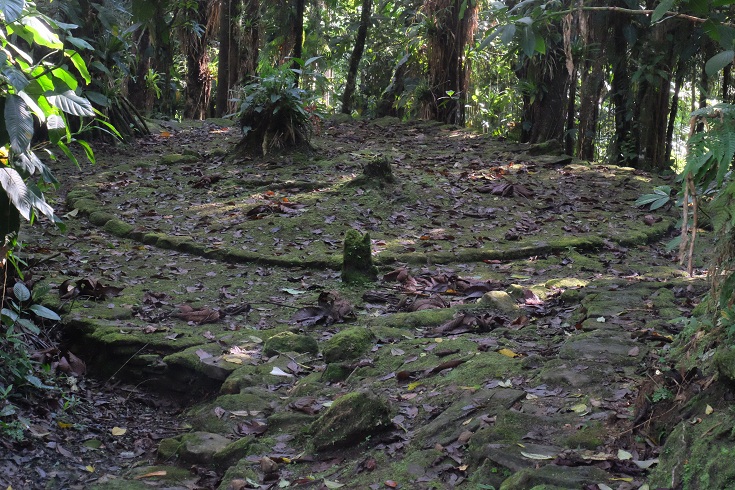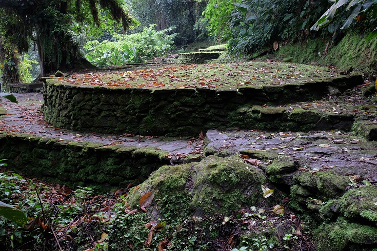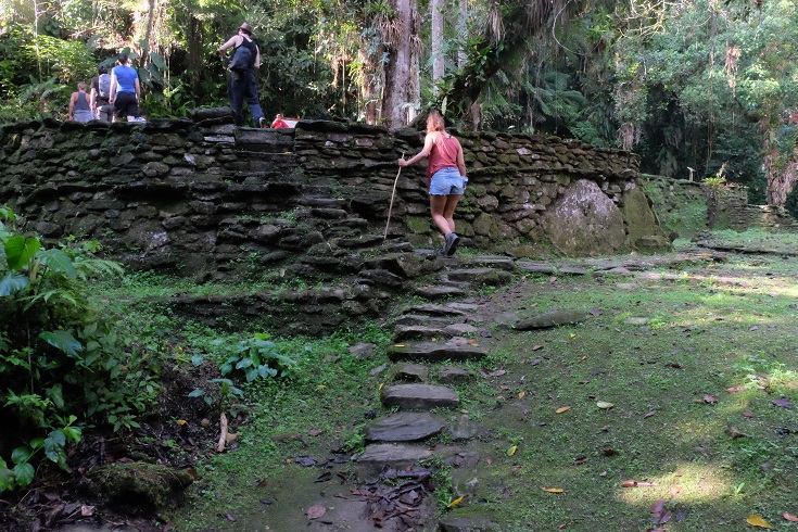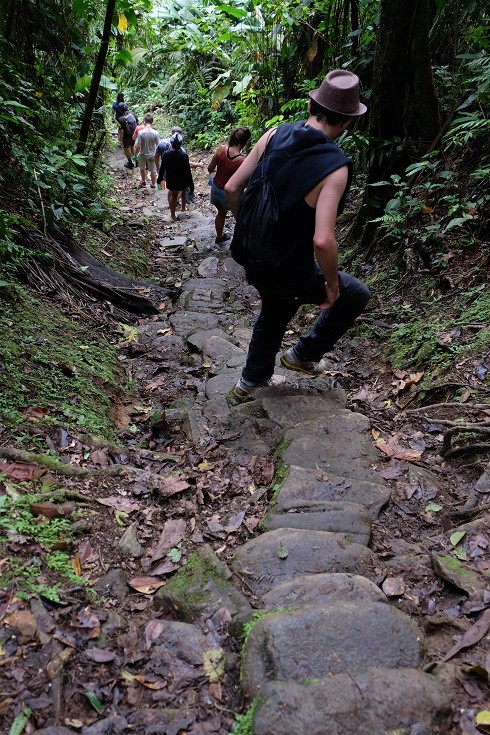 Alright, time for a bit more explanation about this place. The Lost City called Teyuna was founded around the 13th century by the Tayrona tribe who lived there for about 300 years. When the Spaniards arrived and killed everyone, that tribe kind of disappeared and this ancient city got lost. In 1975, it was rediscovered by guys who were treasure-hunters, just getting all the gold and coming back to Santa Marta to sell it. Some guys followed them and 2 rival bands starting grabbing all the gold from there and bringing it to sell it to Santa Marta. One of the guy told the government about it and some archeologists started coming. They worked with those guys who had found the site to try to put back in place the stuff that had been taken from the site, to find where things were as without their help they could not do that. It is incredible to think that this site was totally abandoned during almost 400 years. At the same time, we walked a long way to get there and I can imagine how this site could go totally lost for so many years, this jungle is so wild and crazy. Now, who knows how many other lost cities could be around??!!! We asked Bruno the evening before if the Kogis knew about that site, and it is possible that they knew but kept it secret because this was a holy place for them. Interesting. They could be the guardians of that temple. The city was built in a way where men would sleep in the same house together, and women and children in another one. It was a site of ceremonial celebrations. The Tayronas worshipped Father Sun, Mother Earth and the Moon too. The site was opened to tourism through the trek in 1981. The interesting thing to know that I read on one of the explanation panel is that Teyuna was only one of those house complexes. At least 26 housing complexes were discovered around Teyuna made of building terraces and rings, showing the density of the Tayrona population. Teyuna seems to have been the most extensive, important and monumental of all, making it probably the seat of political power for the surrounding villages.