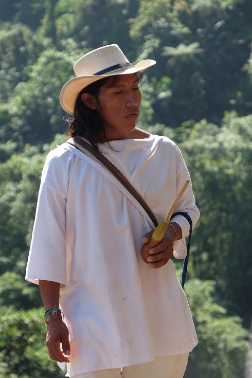 Another group was with a Kogi guide and here he was holding some intriguing recipient from which he was sipping something, apparently some blend of coca leaves with something else that give them energy but can be very addictive.