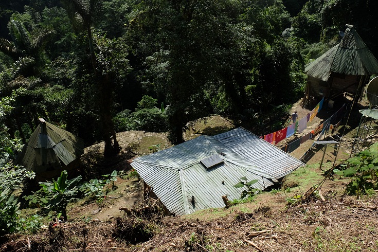 And down we went to a site of 2 Kogi houses about which we learnt a bit. The woman and children one has one entrance only while the one of the men has two entrances and the side of the house is tressed in a different manner for each.