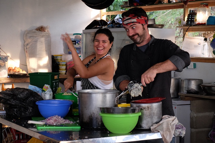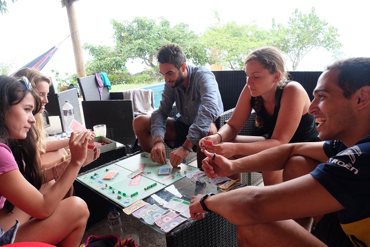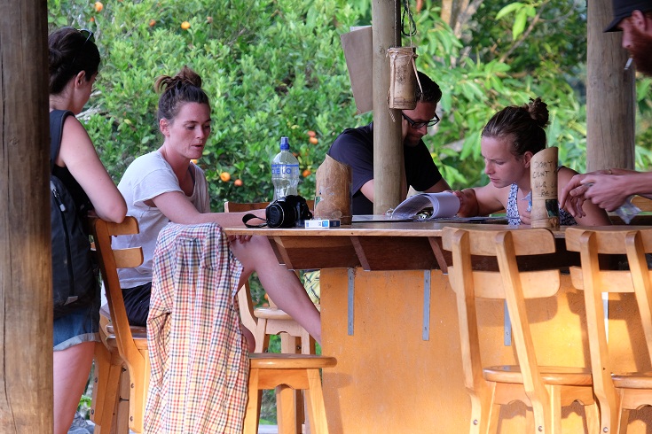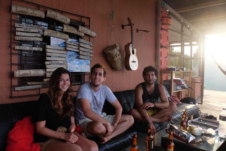 On the sofas, Virginia, Pascal and Jacob who was an awesome guitarist entertaining everyone at the fireplace in the evening. He was a funny guy. He arrived the evening before with no reservation and said “Please, please can I stay. I am ok to sleep on my yoga mat. I really wanna stay here, I have heard so great things about Casa Elemento I had to come!”