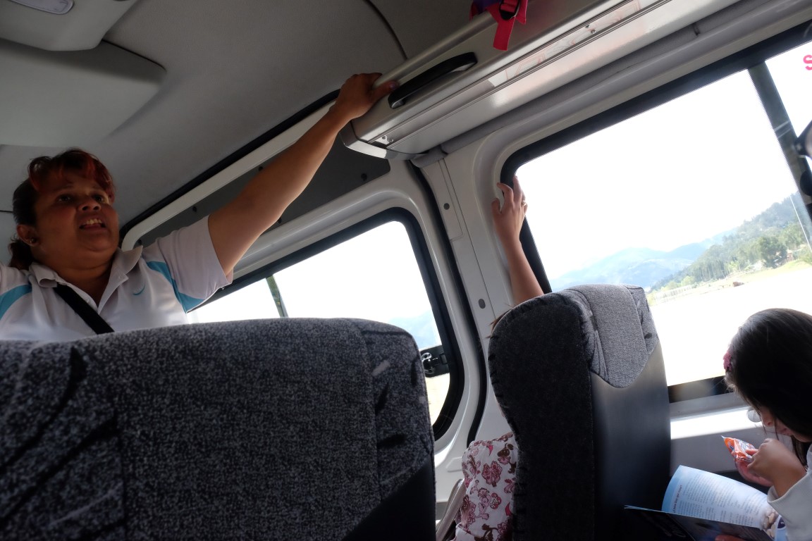 When we got to a small city before Tunja, Francois pointed to me this sign at the back of another bus which gives the possibility to passengers to give feedback on the driver style of driving. It is great but when we got to Tunja half-hour later, we were taken straight by guys there to the next buses, and actually didn`t take the time to report that driver. I guess that`s also probably why that driver was so eager to get us going! I regret not having reported him. He really deserved to get some warnings, who knows when he is going to kill everyone in his bus, including himself.