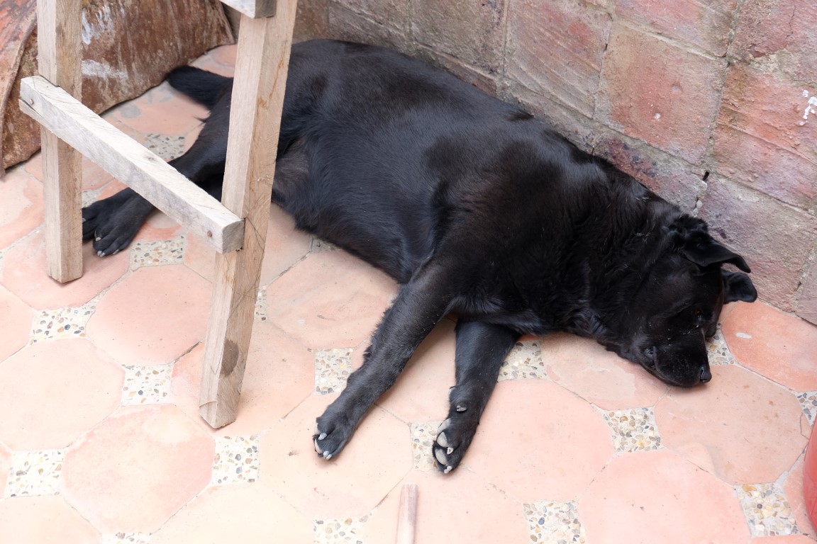 That old dog was like a pig, so fat and snoring heavily, made me really laugh.