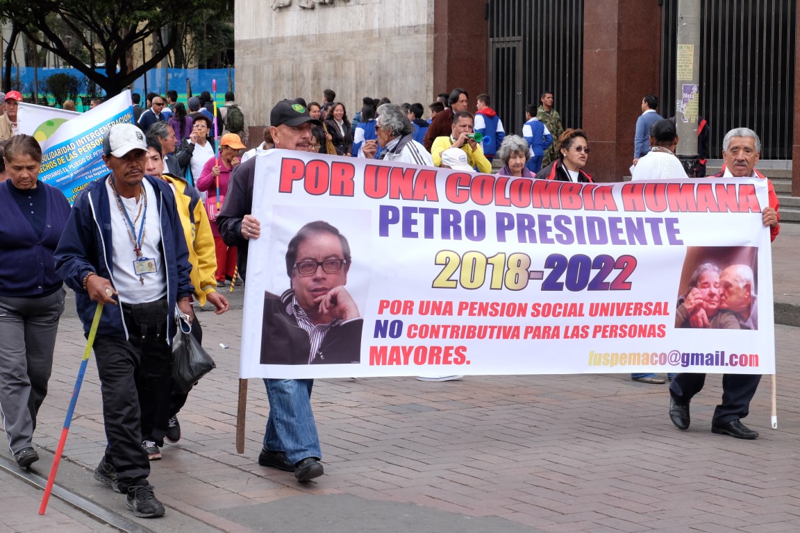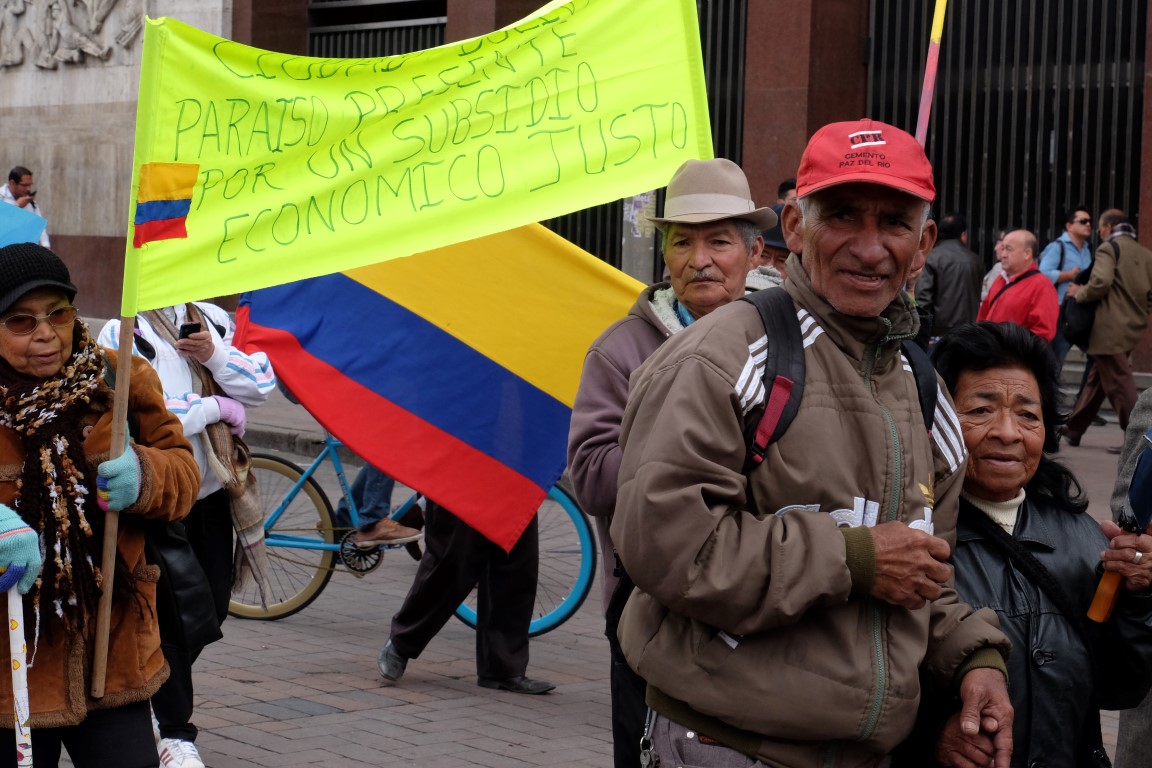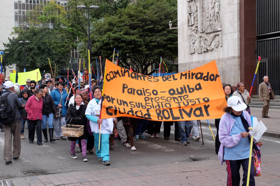 I asked a woman where I could find roses and she happened to know a shop called Cupidon near Museo del Oro stop where I found a beautiful bunch of 12 red roses I could get for Mama Elcida, yeah! Then we turned back but Museo del Oro bus station was closed because a demonstration was going on where hundreds of people were carrying a really long Colombian flag.