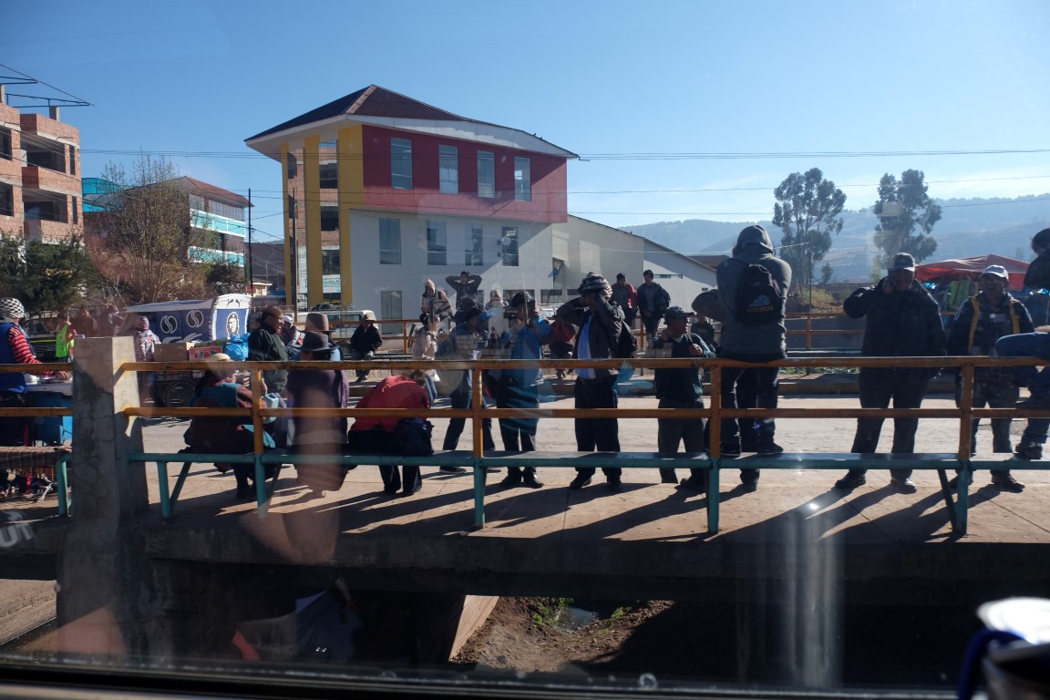 We got to the Poroy train station and could see our train. We grabbed a coffee and sat in the hall waiting for the train. People started queuing up.