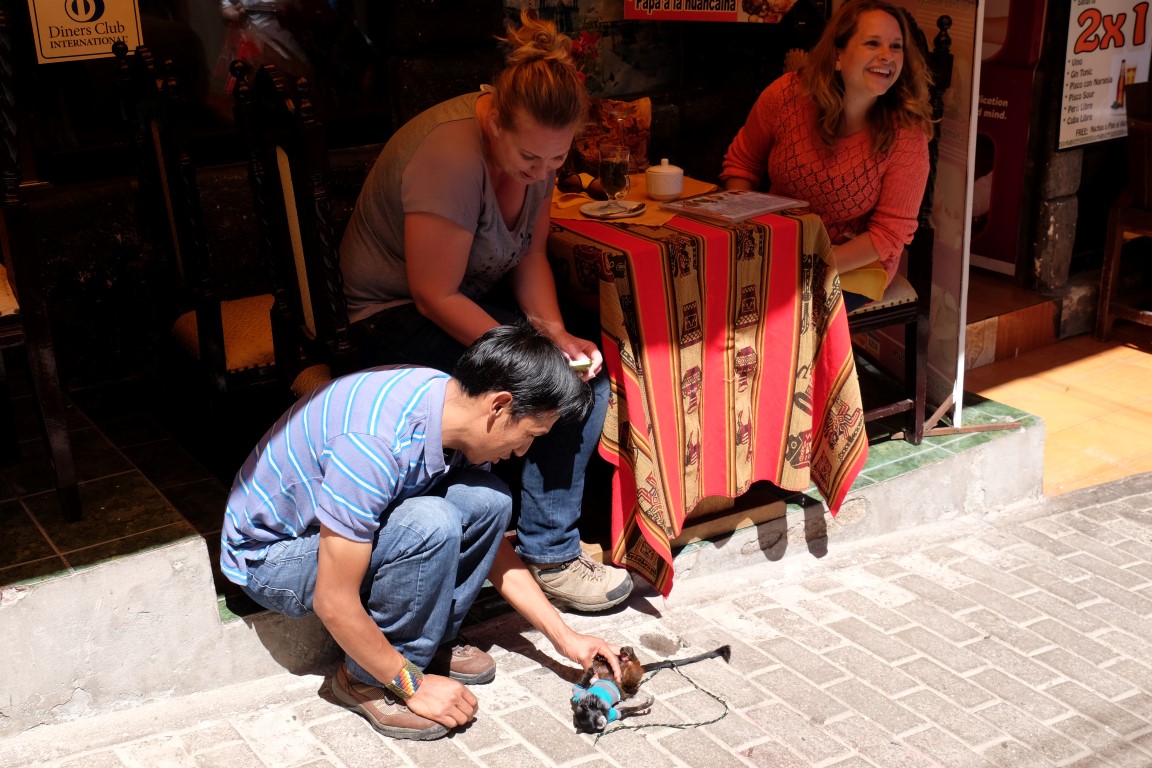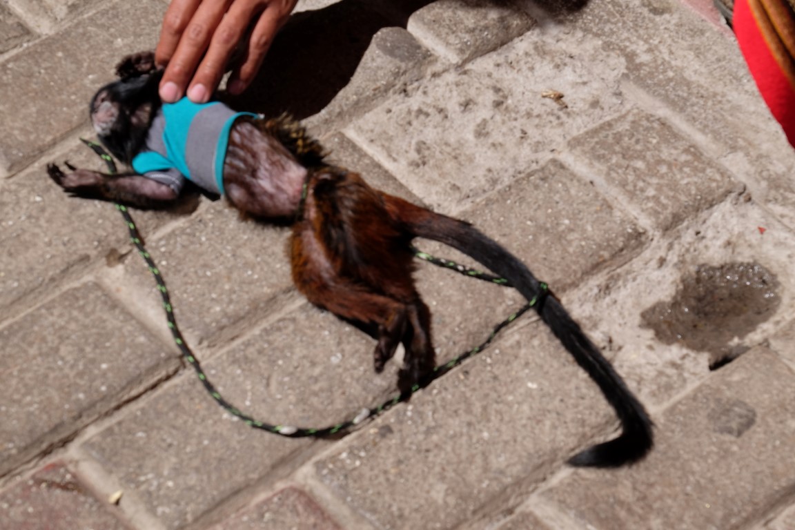 On our way to the bus to Macchu Picchu, there was this man playing with a small monkey