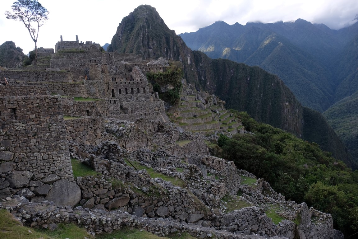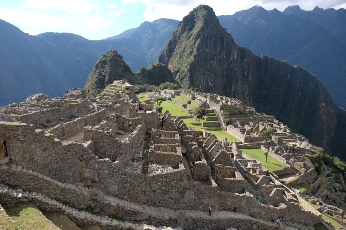 And here we are, after climbing a few steps up, the postcard view known all over the world. The gorgeous mountain right behind it is called Huayna Picchu (little mountain). Macchu Picchu was “discovered” by the American explorer Hiram Bingham in 1911, when a local boy showed him the site. Macchu Picchu means old mountain. It was built around 1450 and never found by the Spanish conquistadors and therefore is one of the most intact ruins of the Incas. There are many theories on why Macchu Picchu was built but none is 100% sure, which makes the site even more mysterious.