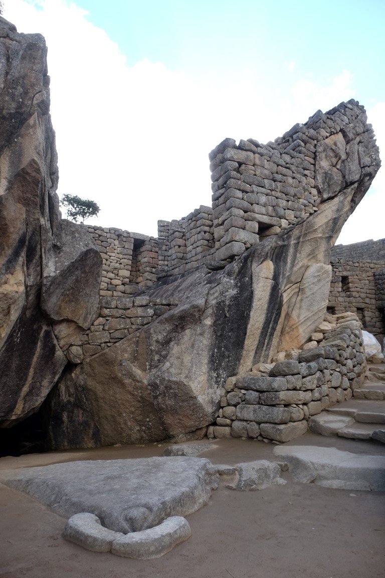 Temple of the condors. The stones are shaped in the shape of a condor`s wings. On the floor, the stone is carved as a condor too.