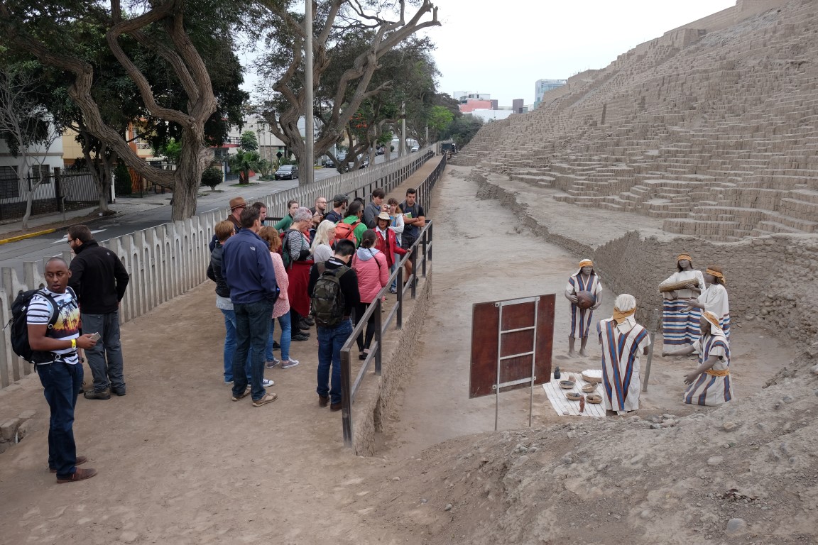 Conservation of this site started in 1981 and restoration is still being performed. They estimate that 40% of the site is still burried. It is a very impressive ruin, especially right in the centre of Lima, surrounded by all modern buildings.