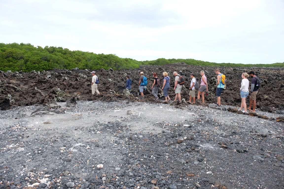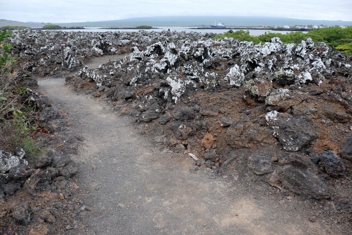 We walked on this path. Just the landscape itself was fascinating, with all this lava formation covered with guano the poo of of the birds, it created a lunar type of landscape. So weird.