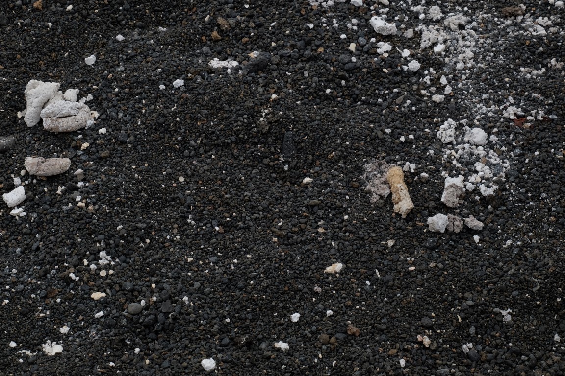 This is a sea lion poo. White because of all the salt of the sea. Yep. I actually saw a sea lion poo in the sea while snorkling and it is white as soon as it gets out of their butt. Amazing uh?