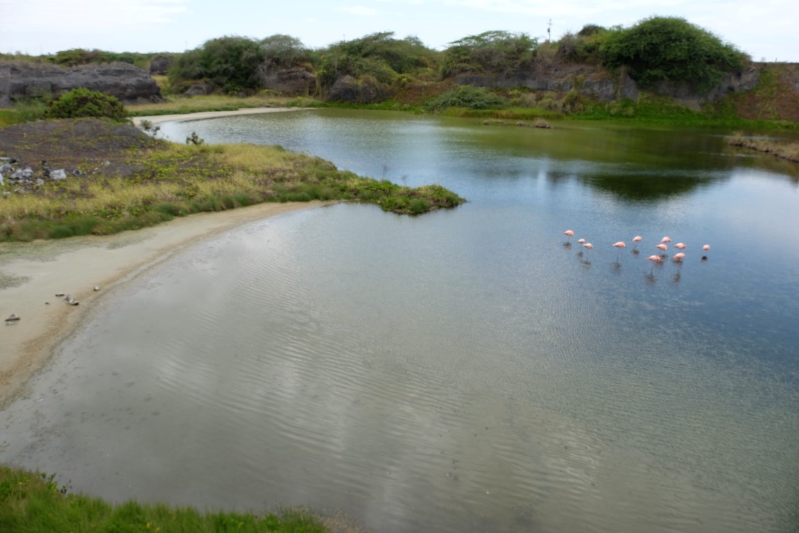A lake with a dozen flamingos, so awesome!!