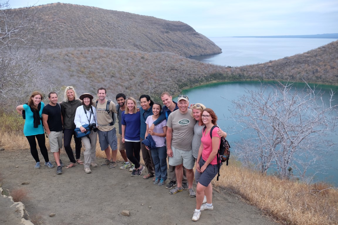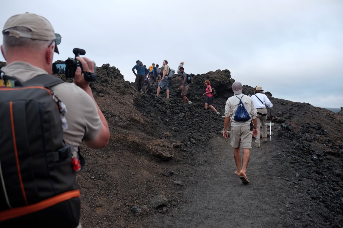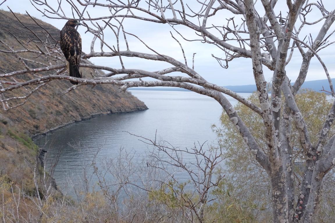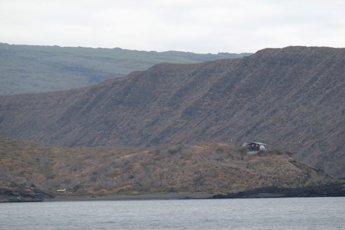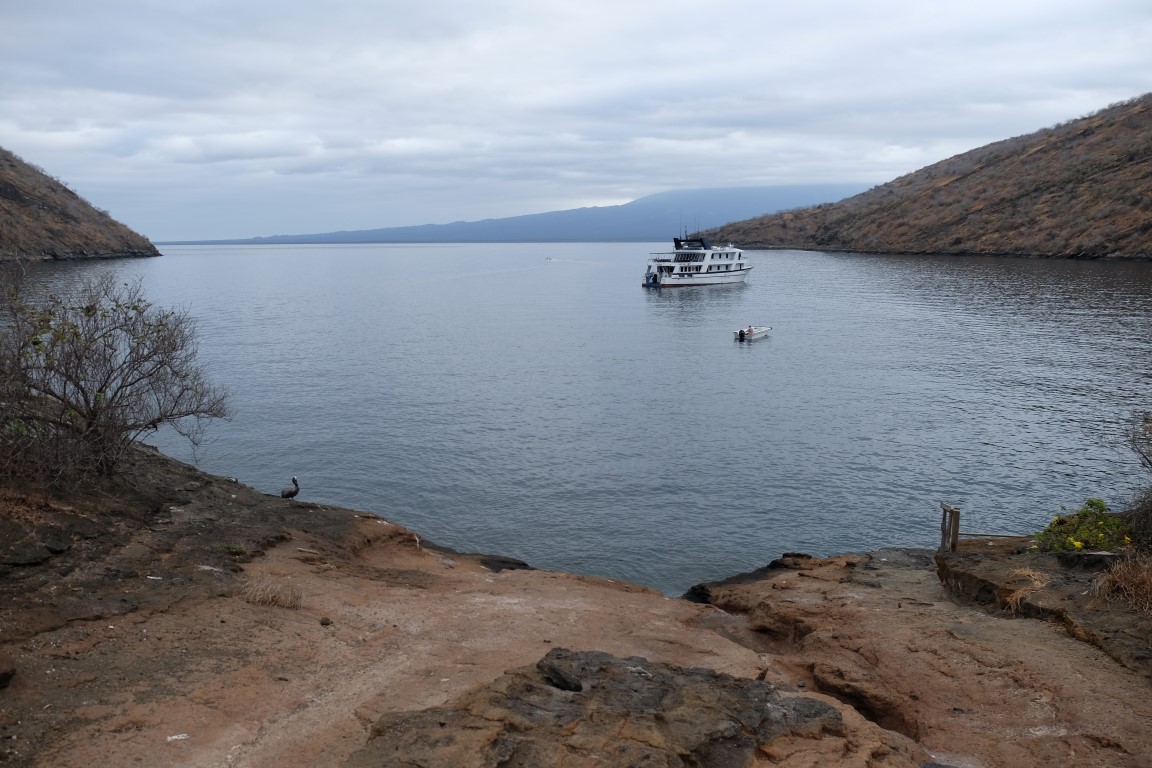 Sometimes a fregate or a pelican would cruise by too. Sometimes we saw sea turtles pointing their head out of the water and disappearing again. Most of us also took a nap. We arrived in the bay of Tagus Cove where the boat anchored.