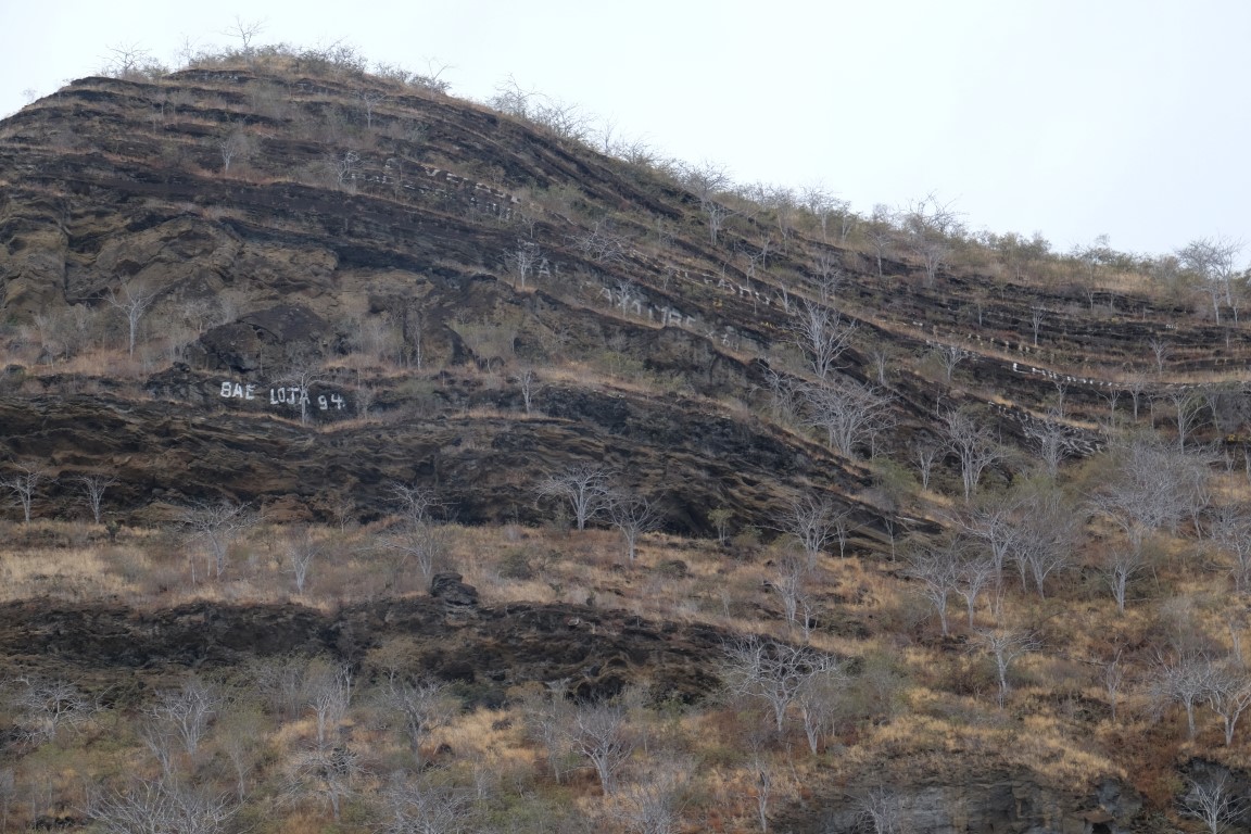 Boats used to come here in the past and the challenge given to the sailors was to climb as high as possible to tag the name of the boat on the rocks. Because it is part of the Galapagos history, even if they are ugly, those tags have been kept.
