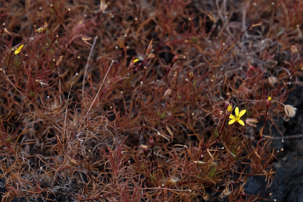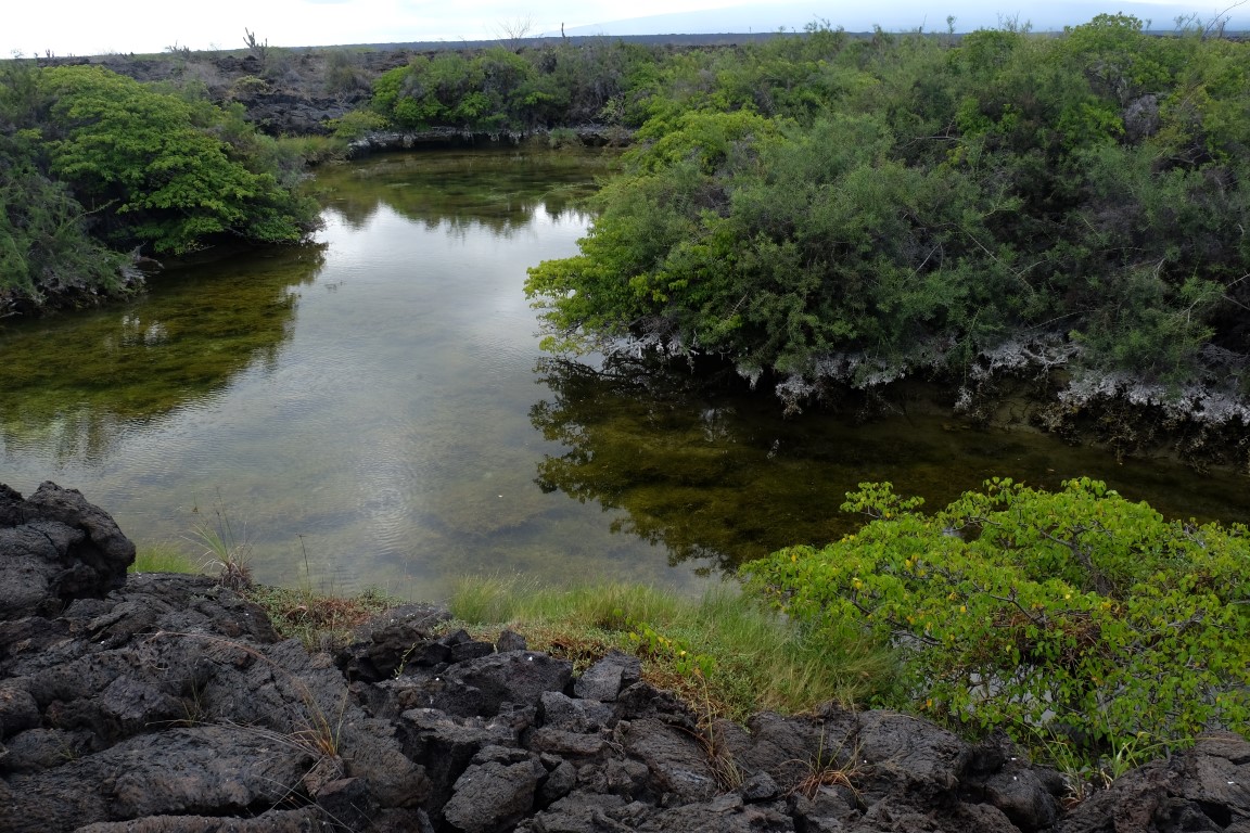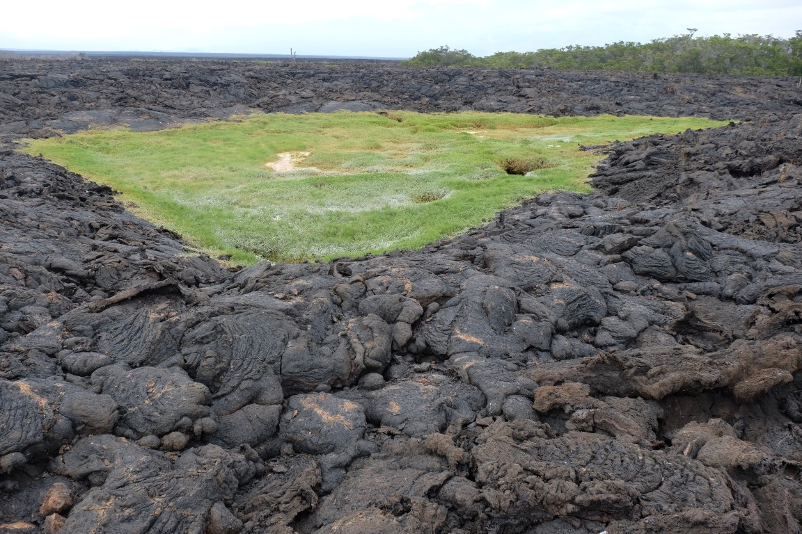 Some green in the middle of the dark lava ground.