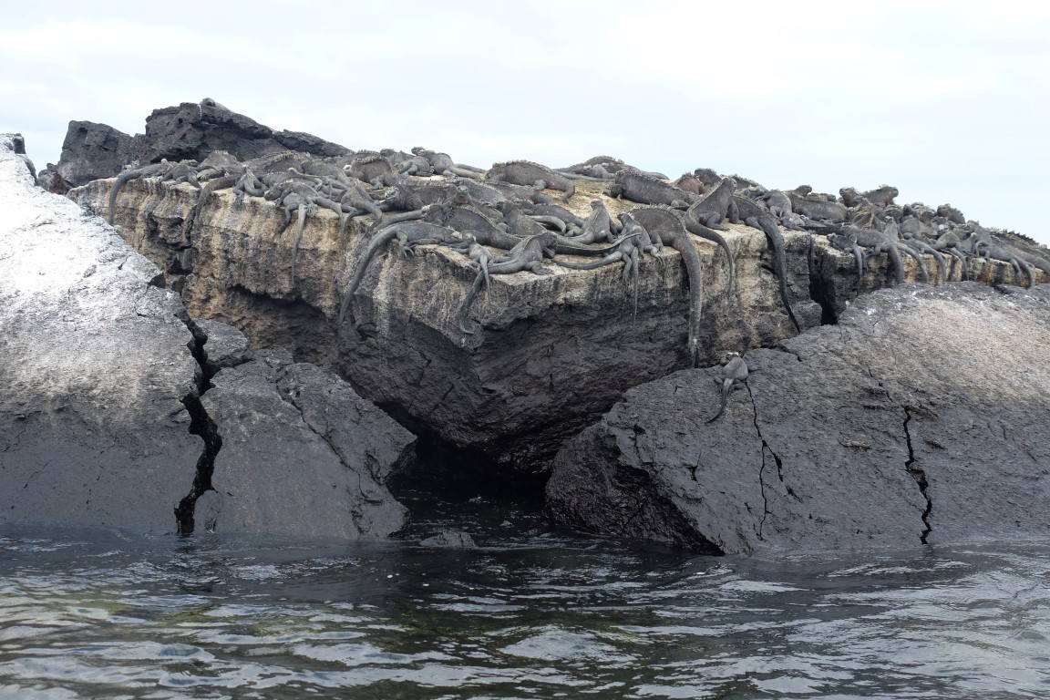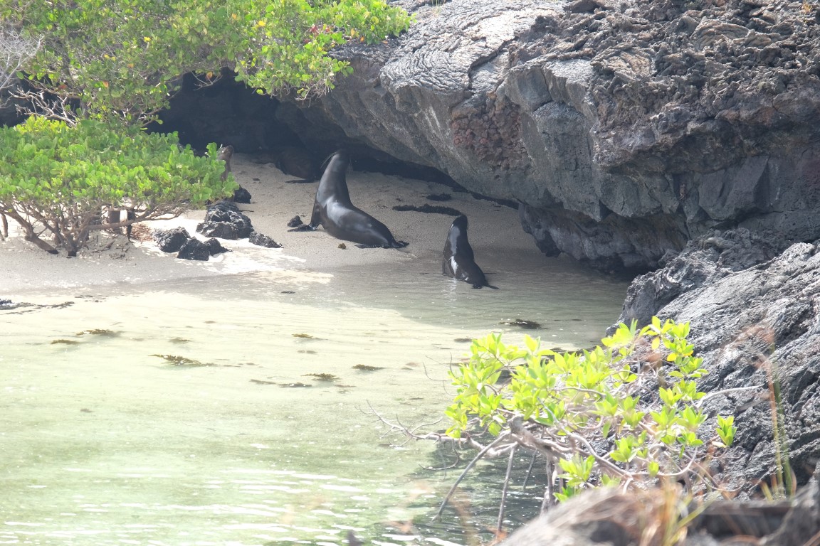 At some point, the sea lion was coming up next to the iguanas.