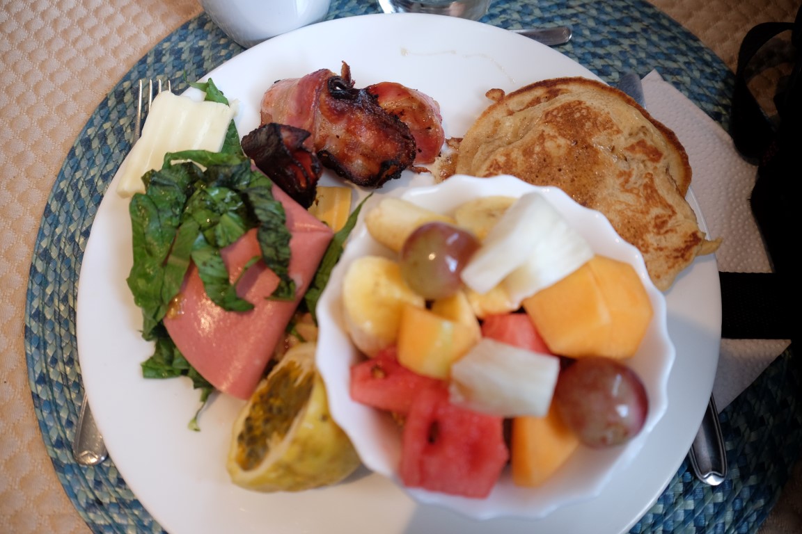 It was really nice as there was bacon and pancake.