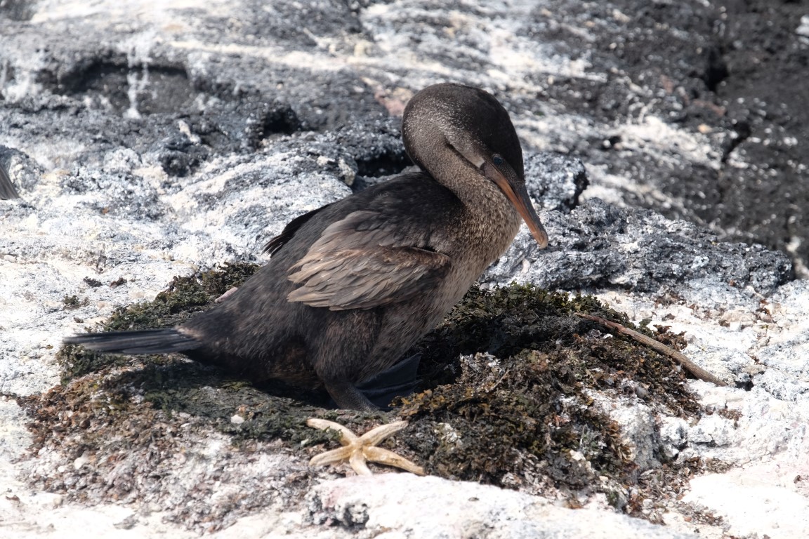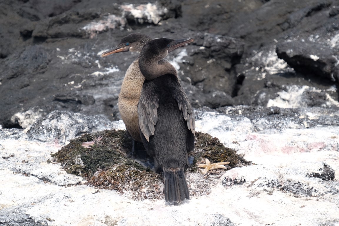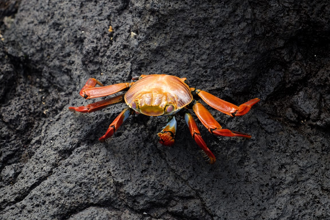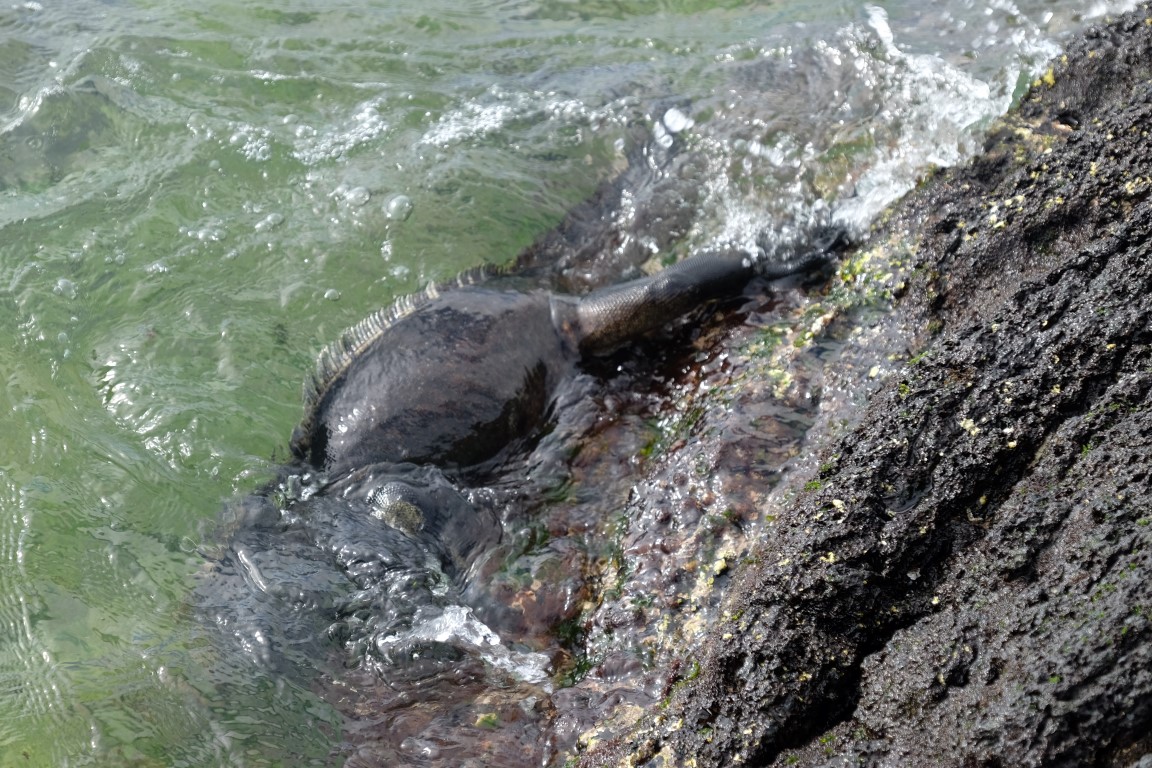 They get out of the water and agglutinate to share body warmth and warm up. From time to time, they spit out salt from their nose. We spent quite a while lingering around this spot where we had just landed all stuck in a deep observation of this amazing Galapagos wildlife, taking photos of the iguanas, herons and crabs.