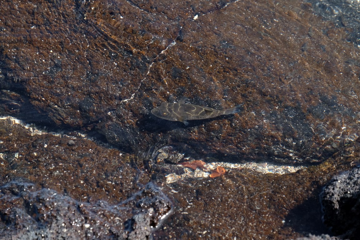 There was this red bull puffer fish also hanging around. You see him all the time everywhere. Carlos said once a friend of him wanted to tease one that was a bit bigger than that and was handing over to him a bit of bread and the fish bited a chunk of his finger!