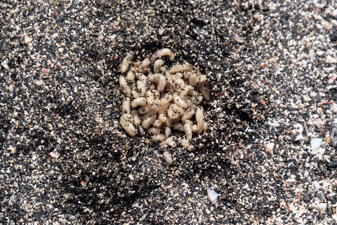 We also saw this agglutinated bunch of fly larvaes, so many so many of them.