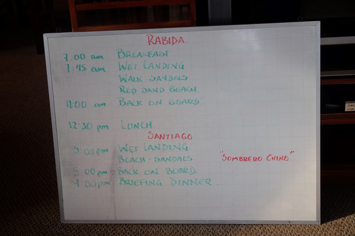 We got our swimming suit on us and walking stuff. We got into the panga and went to Rabida island beach at 7.45am.