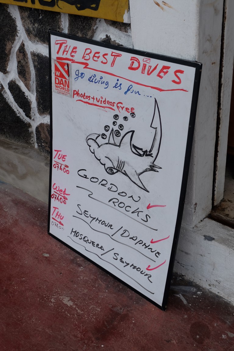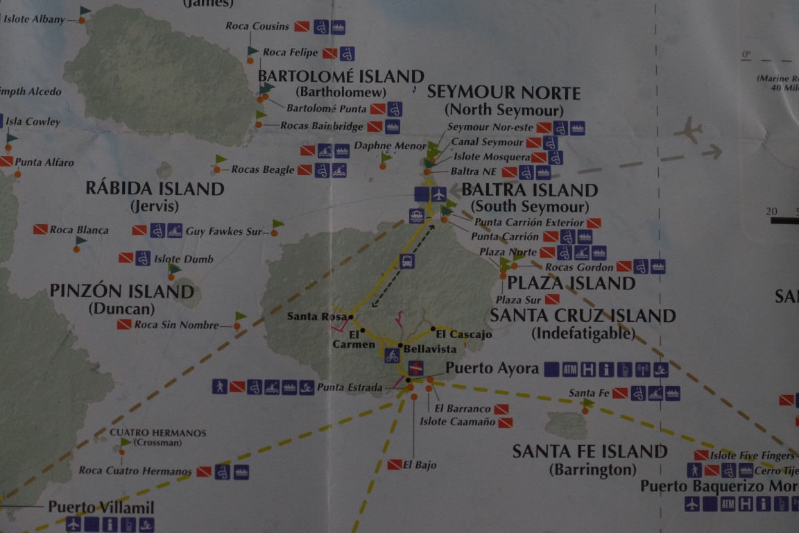 After this short visit to the centre, it was 3.45pm, with Linda and Dave and Patrick we walked around and went to a few dive shops to ask which dives they offered and the details of those dives, where they were going, how long were the dives, which equipment they had, how much the price was, what it included. We didn`t book anything but basically discovered that they all go to the same spots, 3 spots in particular, Daphne and Masquera, Seymour and Gordons Rock and one goes to Floreana island to 2 spots there. So basically three days of diving here would be enough, or 4 days to see those spots. And there are 2 diving spots in San Cristobal island from which we fly out. Something funny when we got in the first dive shop was that when she said we could see garden eels, sea turtles, eagle rays, and sea lions, we were so spoilt after a