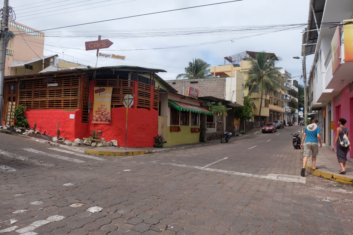 Walking around the streets of Puerto Ayora. Passing the Cris`burger where we had massive burgers two evenings before.
