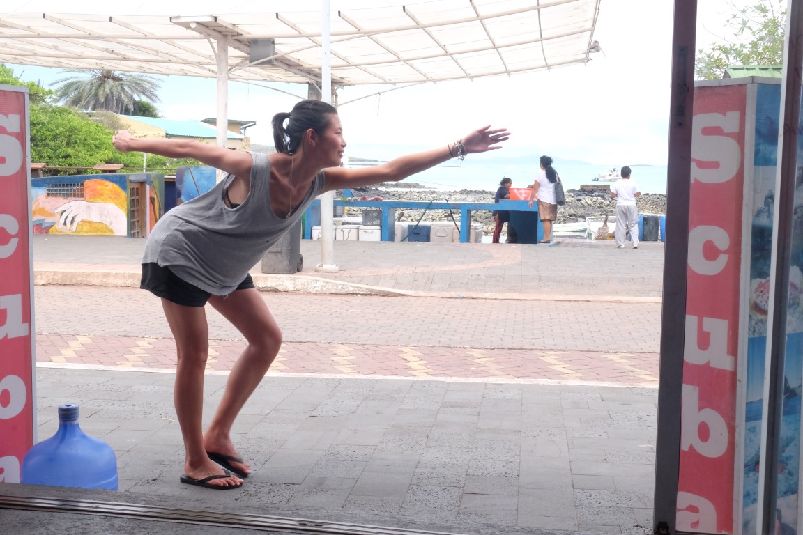 While waiting for the taxi, Yida had fun imitating the Galapagos animals and we had to try to guess what they were.