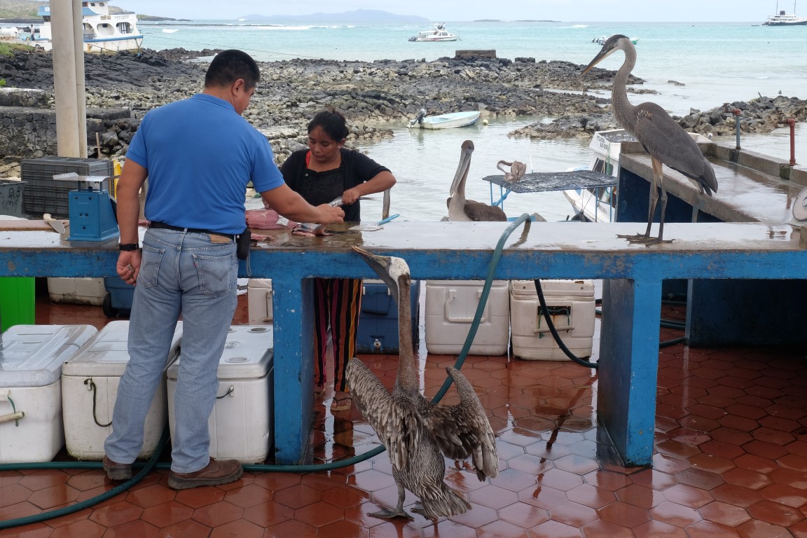 Ah, the fish market, my favourite place of Puerto Ayora! 😀 This time even a heron visited.