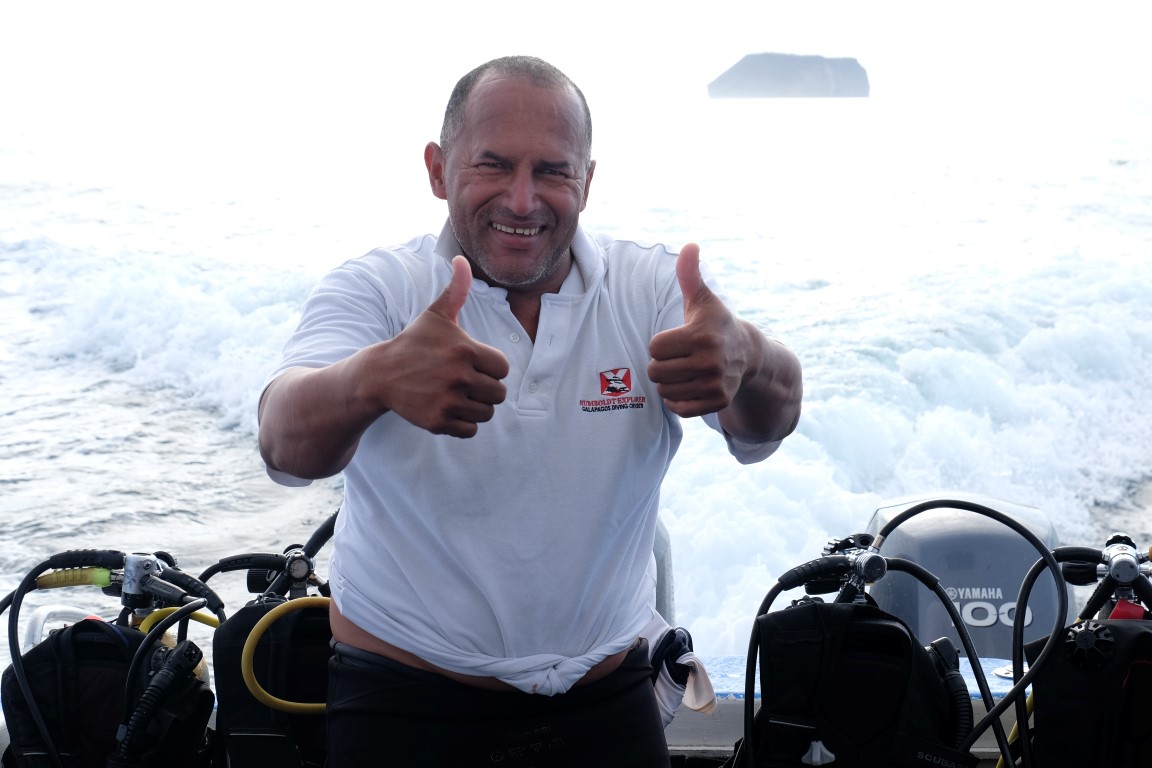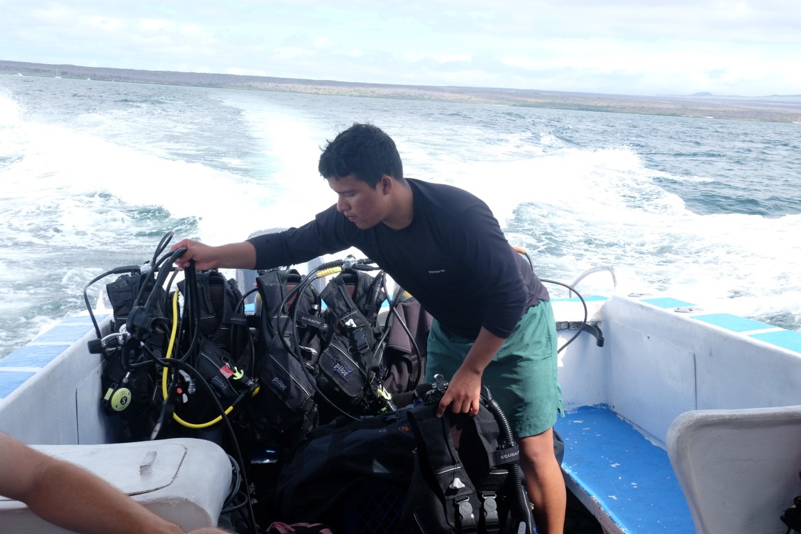 On the boat. Macarron told us that actually Seymour had a crap visibility so we would go again to Daphne Menor for the first dive. We were a bit disappointed, at the same time, going again to a site you have already been is nice because you are familiar with the place, while you notice more details and ultimately, every single dive is always unique with always different animals to see, so that was fine.