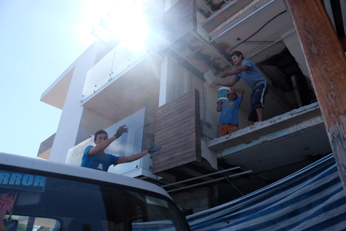 We passed these guys, one was throwing brick after brick to the other guy. No helmet, no solid shoes, no protection wear, you guys are as nuts as the guy without a soundproof helmet in Bogota, jeeez, the work conditions!!! Oh well, as long as they know what they are doing..