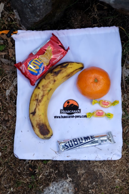 We got to the trek starting point. Toilet stop in the nature for some. Shared the coca leaves around. We got a super cool snack bag from Huascaran.