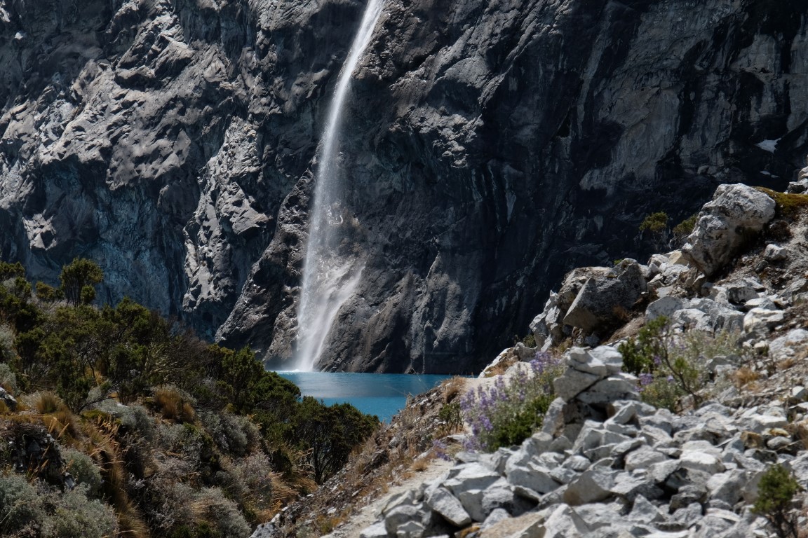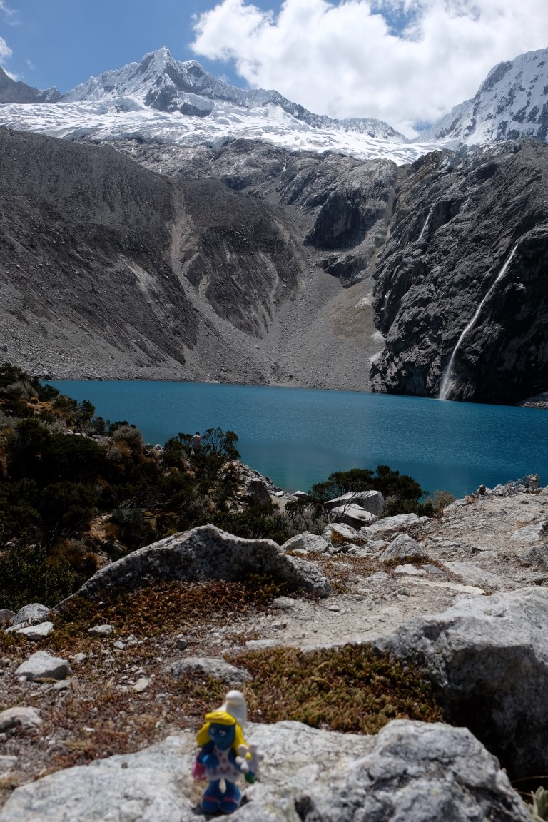 I started having a headache, damn it, always get that in the first days at 4,000m. We kept going up. Getting finally closer to the lake, on the left you can see a bit of the waterfall which turned to be falling into it.