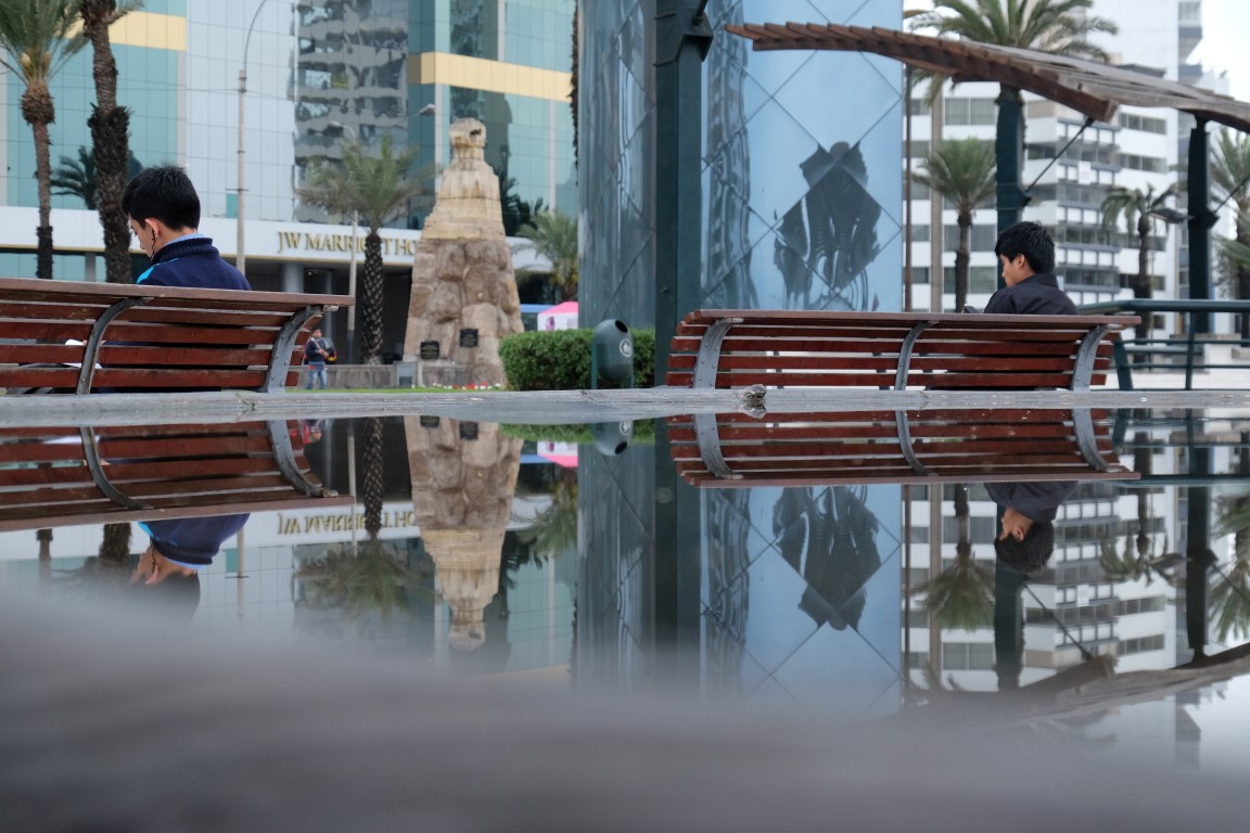 We arrived in Lima around 6.30am and dropped the bags at our respective hostels to check-in later. One of the thing Rebecca, the two Matt and me wanted to do that day was paragliding! We walked on the sea front to find where the spot was. First we ran into a fountain in which the water was so still that it was creating perfect reflections. I loved that!