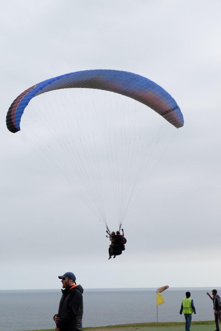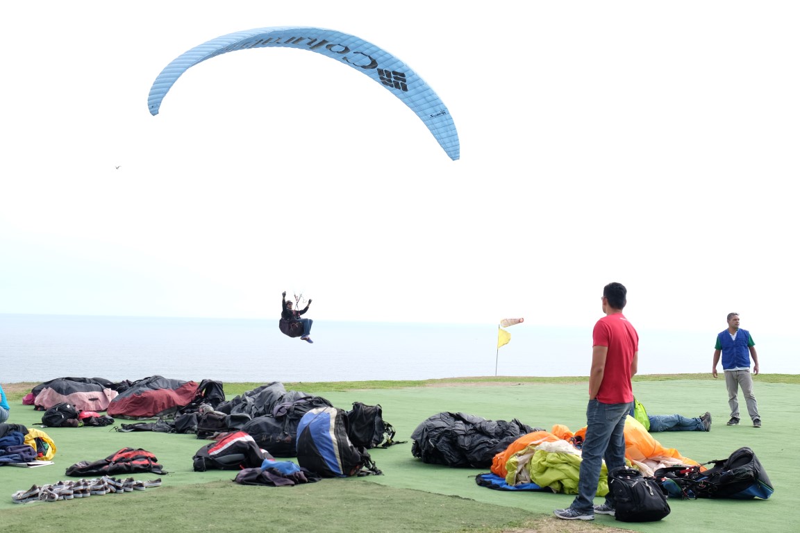 If you have never gone paragliding, I would highly but highly highly recommend trying it out. It is probably the most easy sport you can try out. Way easier than trying windsurfing, kitesurfing, surfing for the first time for example, or even roller-blading, snow-boarding, even climbing. Paragliding is super simple and give you incredible sensations. You book a session, you turn up there, and one guy will be behind you doing everything. You let them put all the materials on you, the harness, the helmet, whatever is needed. Three or four other guys are assisting him and you, they help to lift the sail. You walk a bit in front of you, you walk a bit back, and before you know it, the sail is up and your feet are in the sky and the guy behind you controls it to take altitude. You just sit in the “canvas chair” behind your butt, you put your hands on the canvas stuff next to your left and right arm. And you enjoy the view during the ride. That`s it. Anyone could do it really. I think I would be 80 that I may still go paragliding!!! And what an incredible feeling!! You are like a bird. There is no noise of a motor. And you are 100% in the air. The sail is above you, so you don`t see it. You are just sitting in the sky. Flying. You are above all the Earth life which keeps going on while you are out there and you can observe it from so higher up. I had done paragliding a few weeks before for the first time in San Gil so I was not nervous at all this time. In San Gil, it was all about the valleys and the mountains. But in Lima, it was a totally different scene. I could see from the sky the highway traffic of the road which is along the sea. I could see the surfers below me taking waves, and the waves series coming through. I could see all buildings of Lima and further away to the hills. I could see all the little humans walking around and kids playing just below me in the park. It felt like being a bird. There is a book I love love love which is “Le livre du voyage” from Bernard Werber, a French writer. I loved it so much that I have onced done the full translation of this book to English in a Word document to offer it to a really good friend of mine. If it still hasn`t been translated, let me know and I will send a copy to you. But basically, in that book, Bernard Werber makes you lie down still on your bed, and imagine that you get out of your body and you climb a ray of light coming from your belly button and you climb up and higher up and you start seeing the world from higher up and higher up and then you start flying above your city and you see the buildings and the people from higher up and the power of your imagination can take you literally everywhere. You can practice that many times, and the more you practice the better you get at taking off and flying with your imagination because it develops. It is an awesome sensation to be able to do that. But still, it doesn`t replace the fact of doing it for real. Well, paragliding is so far the closest to this experience that I have found so far!!! Go for it!!!