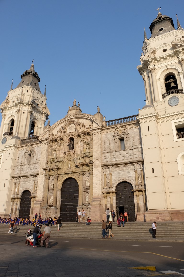 After that, we took a taxi to go to tourist markets to get some touristy souvenirs for Matt to bring back home. The taxi actually took us to normal markets and from there we walked around. It was a much more authentic Lima, a bit rough, the buzz of the streets going one like crazy, no tourists. We didn`t really feel comfortable there, it felt kind of on the edge of being unsafe, a place where you may get your camera stolen in a matter of a seconds if you got it out. We were both happy to not be walking there alone and at the same time, it was such an “in-your-face” experience compared to the quiet posh Miraflores neighbourhood. It was colourful, noisy, vibrant, hectic. We didn`t dare take our cameras out though. So we kept walking and found a local place where we had local chicken and rice. Then we walked away from that area to the souvenirs shops areas. We got to Plaza de Armas which is the centre of Lima where there was this pretty cathedral which was built between 1935 and 1938. https://en.wikipedia.org/wiki/Cathedral_of_Lima
