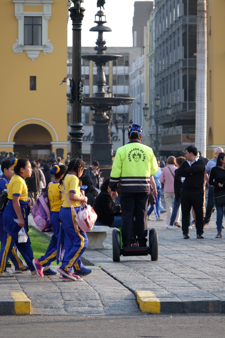 We leaned against the Palace and observed the street life going on. It was funny to observe things that 10 years ago you would not see, like this Lima security guy going around on a Segway.