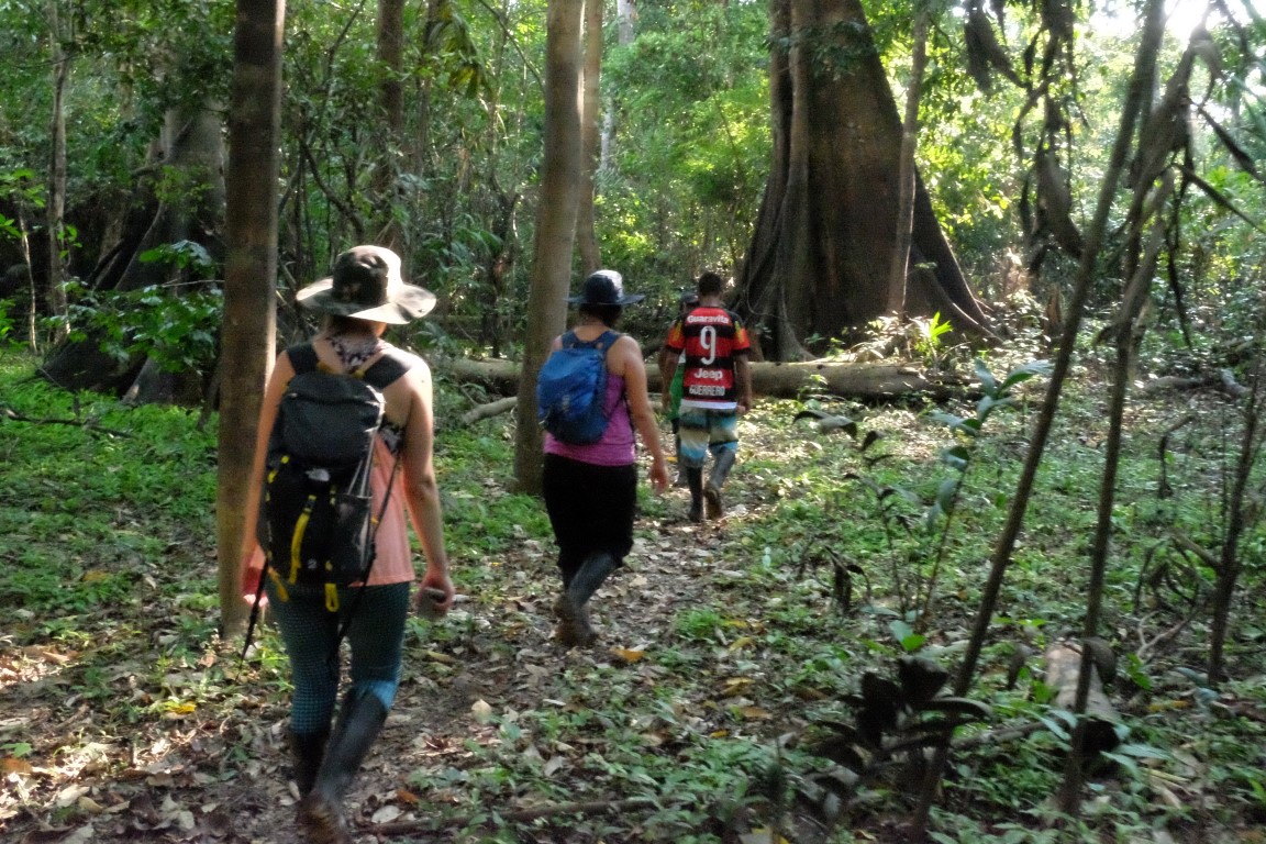After breakfast, we were ready for a morning walk in the jungle. The caiman was still tied to the rope, looking more weak than the day before. We asked when they would release it, and they said soon. Ok…